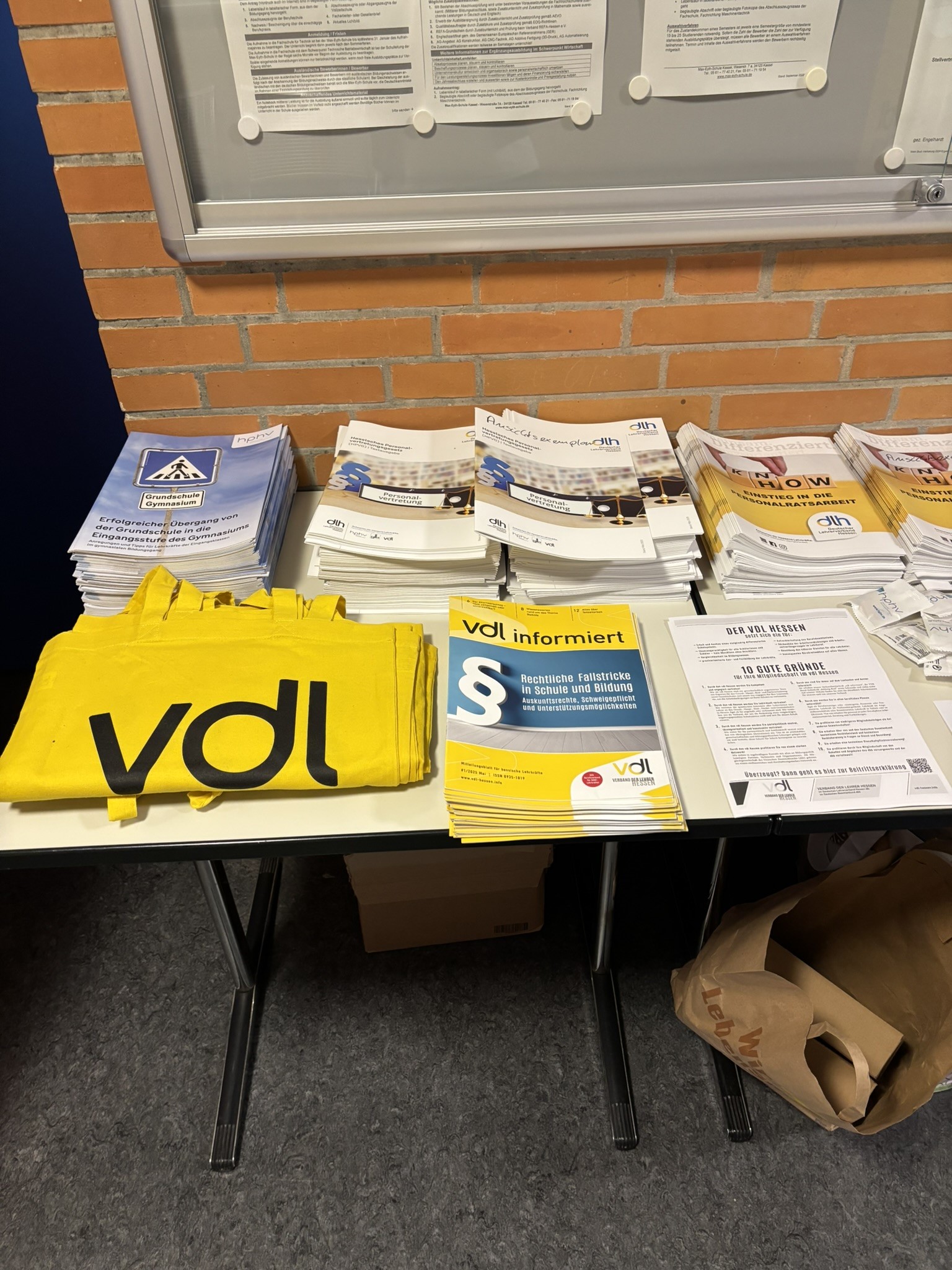 Der dlh-Kreisverband Kassel hatte sich dafür neben den üblichen Broschüren, Stiften und Post It-Blöcken ein paar Neuerungen überlegt. Die Fraktionsmitglieder traten in einheitlichen weißen Polo Shirts mit dlh-Log auf, um als Verband sichtbar zu sein. Zudem kam zum ersten Mal die neue Broschüre für die Personalratsarbeit außerhalb einer Fortbildung zum Einsatz. Schließlich hatte der Kreis- und Landesvorsitzende Boris Krüger die letzten Pressemeldungen des dlh im DINA 2-Format ausdrucken und aufhängen lassen. Also rundum eine gute Vorbereitung, die sich in zahlreichen anregenden Gesprächen am Stand des dlh niederschlug.