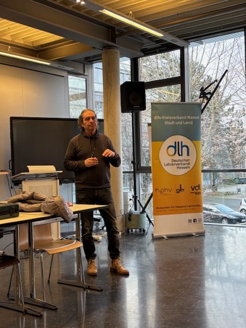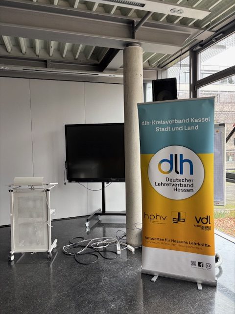 Auf großes Interesse stieß auch in diesem Jahr die Informationsveranstaltung des dlh-Kreisverbandes Kassel zum Thema Beamtenversorgung und Ruhestand am 26. Februar 2026. Knapp 30 Lehrkräfte aus Kassel und ganz Nordhessen folgten der Einladung in den Großen Konferenzraum der beruflichen Max-Eyth-Schule. Für einen angenehmen Rahmen mit Kaffee, Gebäck und Getränken war gesorgt. Der Raum wurde dankenswerterweise vom dortigen glb-Schulobmann Claus Grün zur Verfügung gestellt. Eine kurze Begrüßung gab es durch den Schulleiter der MES, Herrn Otto.