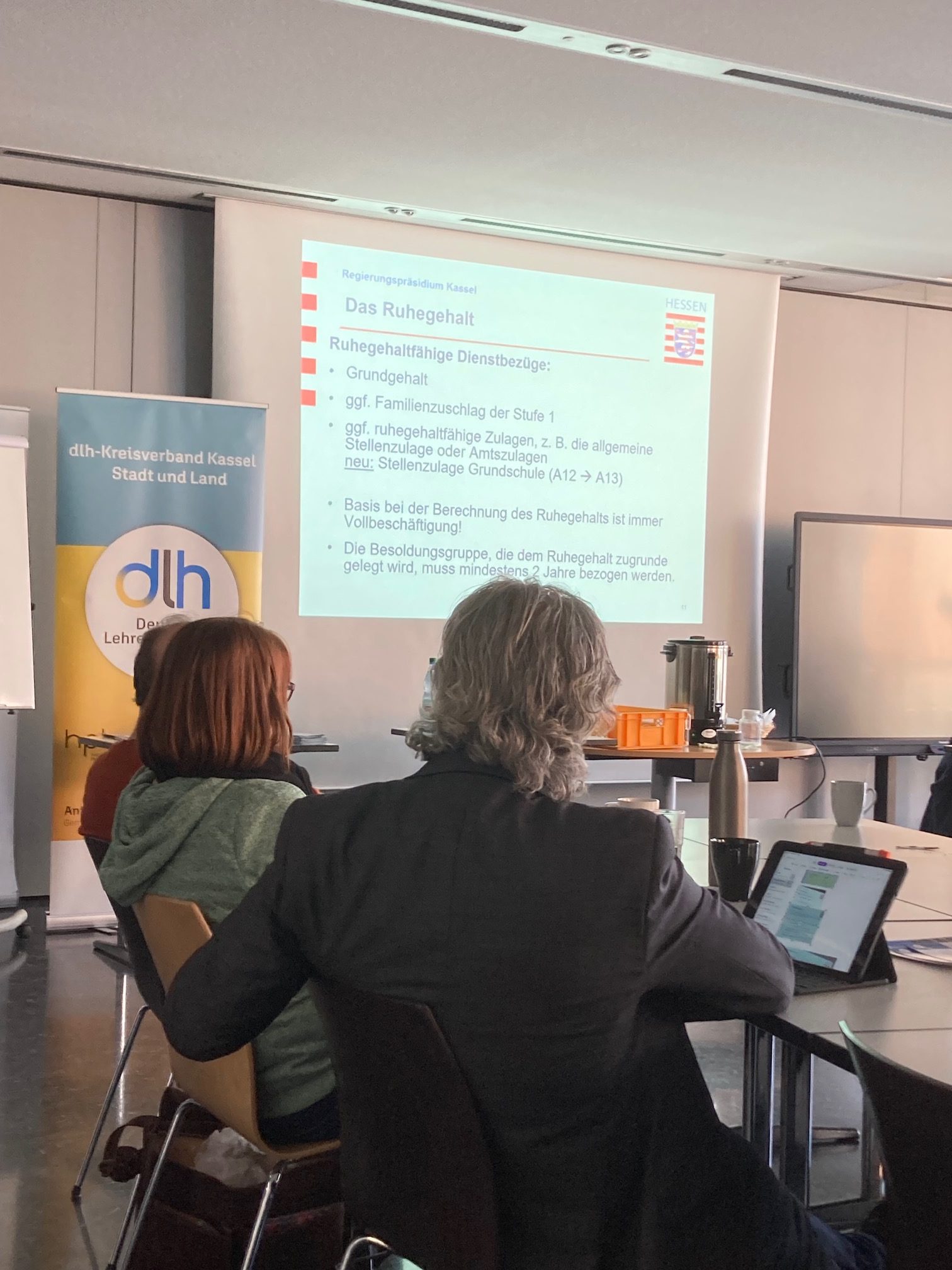 Am 7. März 2024 fand in der Aula der Kasseler Max-Eyth-Berufsschule eine Fortbildung des dlh-Kreisverbandes Kassel zur Beamtenversorgung statt. Mit über 40 Teilnehmerinnen und Teilnehmern war dies die bestbesuchte Veranstaltung des Kreisverbandes Kassel in den letzten Jahren.