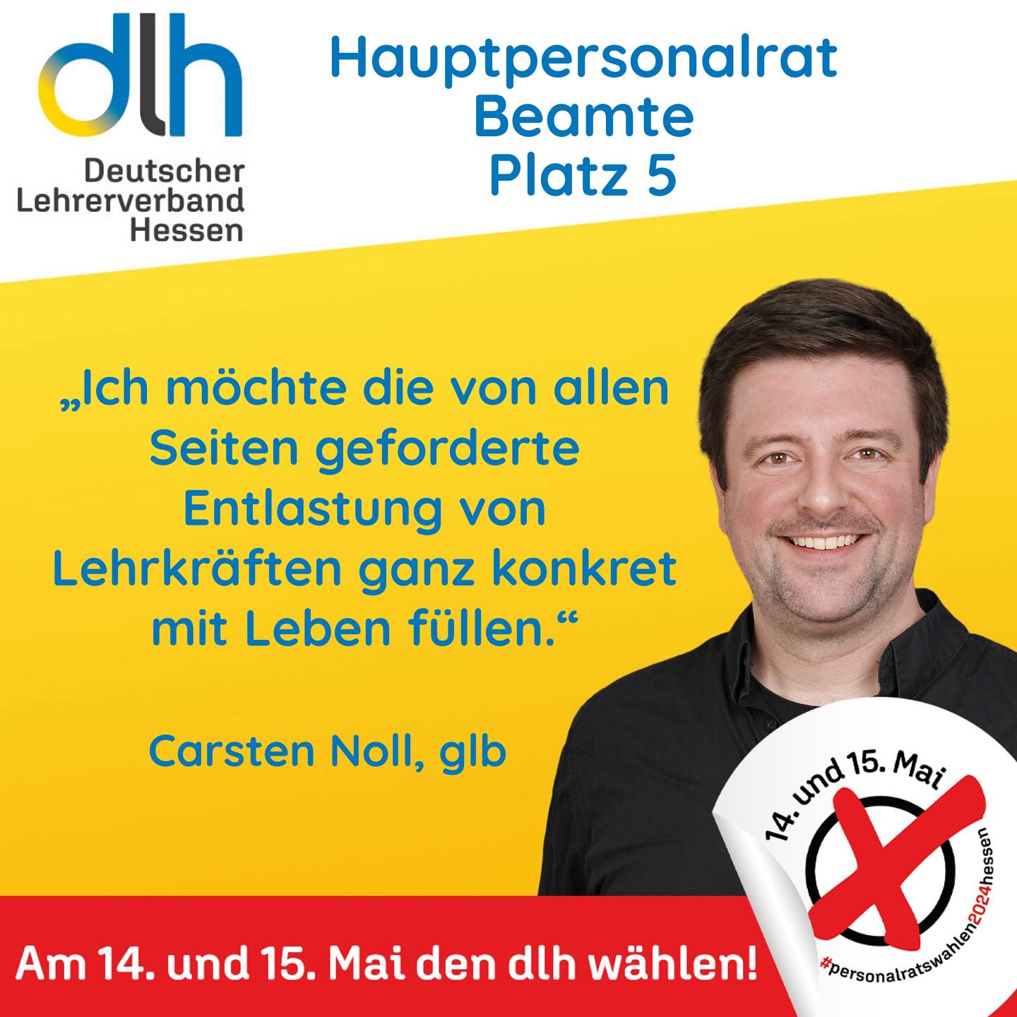 Besonders wichtig ist Carsten Noll, dass die Kolleginnen und Kollegen entlastet werden, denn er beobachtet mit Sorge, wie stark die Belastung angestiegen ist. Ein Herzensanliegen ist ihm z.B. die Abschaffung der Wiederholung von Klassenarbeiten.