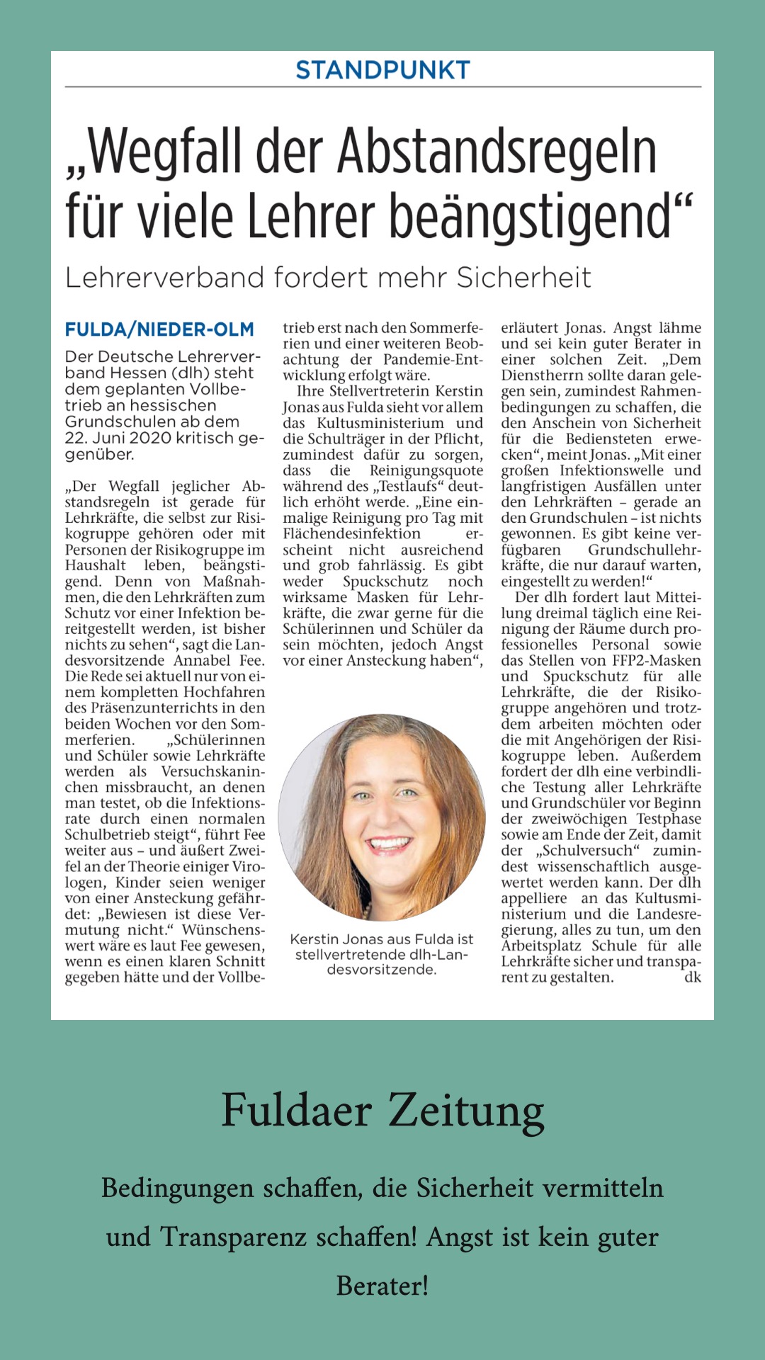 neben zahlreichen Nachrichten und Anrufen, die uns in unserer Haltung gegenüber den Planungen des Kultusministeriums und der Landesregierung bestärkten, erhielten wir auch große und positive Resonanz über die bekannte Lehrkräfte-Plattform von news4teachers.de sowie in der lokalen Presse.
