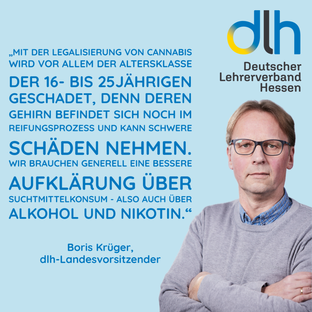 Der dlh-Landesvorsitzende Boris Krüger befürchtet, dass das neue Cannabisgesetz den Schülern den Eindruck vermittelt, dass Cannabis ein cooles Erwachsenenprodukt sei.